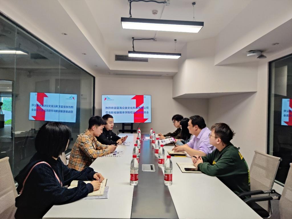 会议伊始,秦立栋副总裁简要介绍了蓝海众浪文化科技(成都)有限公司的发展进程、发展理念、战略定位、发展现状及产业布局等情况,并对公司实景演艺项目做了详细介绍,并表示影视融媒体学院毕业生与其岗位需求契合度高,愿为学生实习、应届毕业生就业提供相关就业岗位和实习实践机会,共同开拓院企合作互惠共赢新局面。