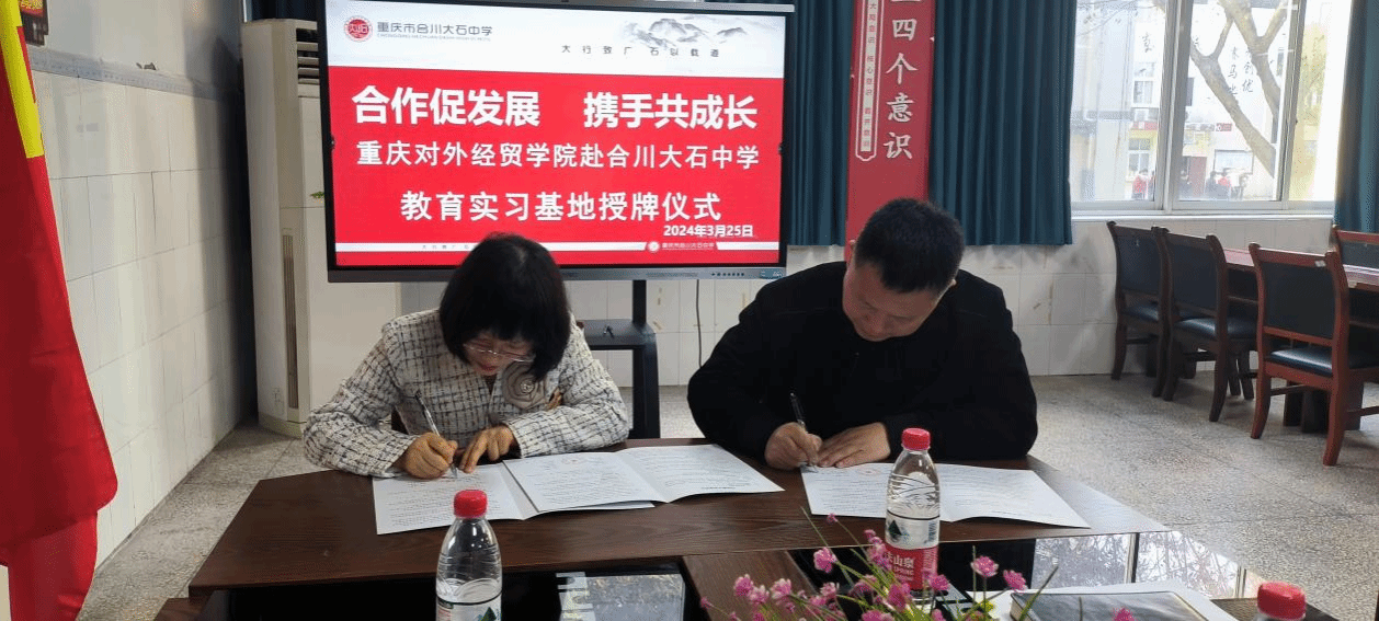 为了促进对文学与创意传播学院师范专业的学生实践教学能力的培养,进一步拓展与夯实36365官网教育实习基地,丰富实践教学资源,深化与基础教育的合作,实现合作共赢。2024年3月25日下午,文学与创意传播学院教学副院长陈寿琴教授、侯仲林副教授、黄文贵副教授及耿文丽老师前往重庆市合川大石中学参加实践教学基地签约授牌仪式。
