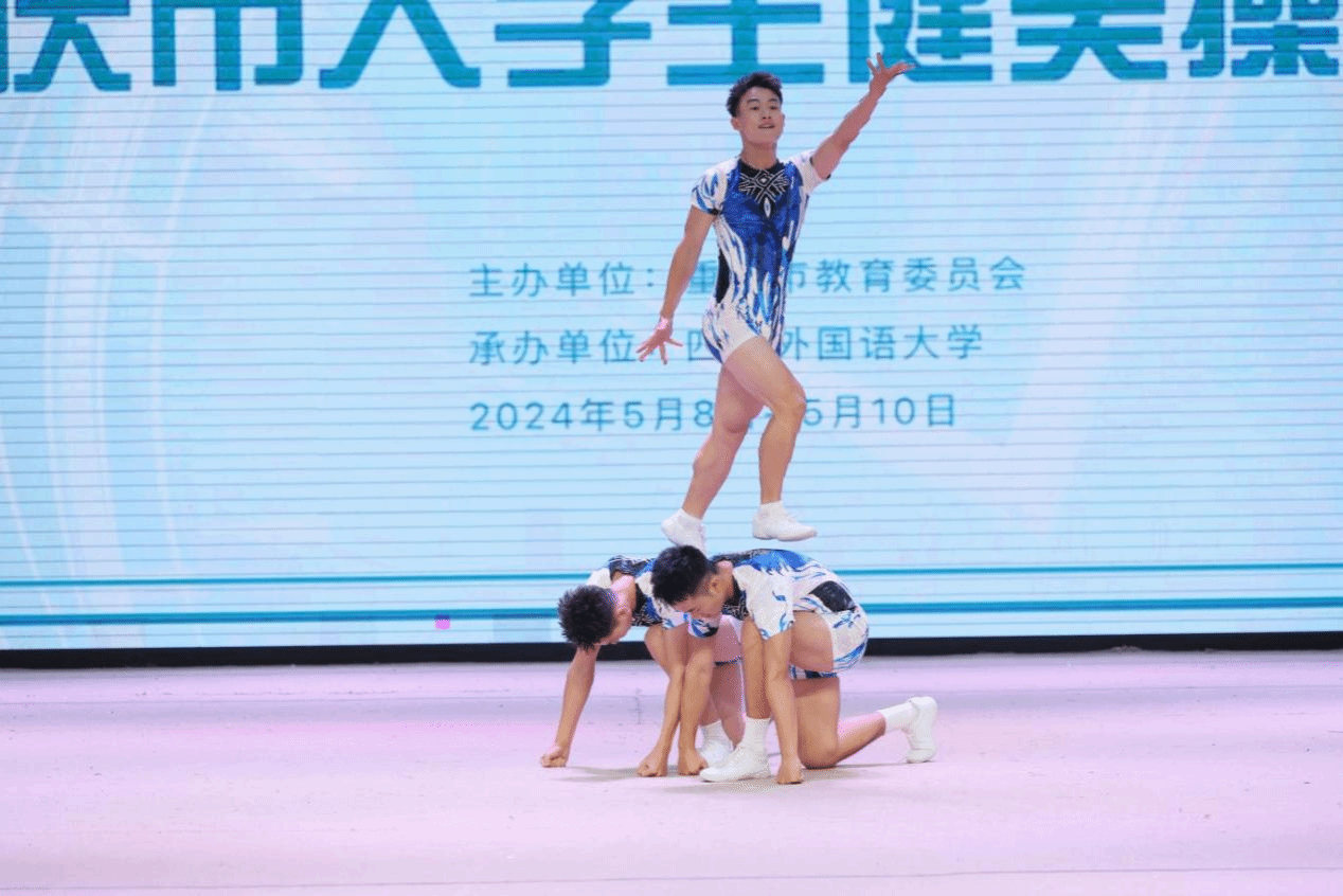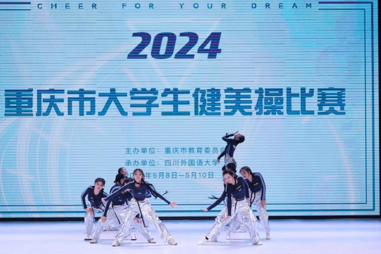 由重庆市教育委员会主办,四川外国语大学承办的2024年重庆大学生健美操比赛于5月8-10日在四川外国语大学大礼堂举行。学校派出了由校体委办公室主任、体育与健康学院副院长贾勇为领队,体育与健康学院教师谭娟、向路、邓茗丹为教练,20名学生组成的36365线路检测中心入口代表队参赛。本次比赛分为甲、乙、丙三个组别,丙组为体育专业(高水平运动队学生、体育特长生、运动系学生等)。