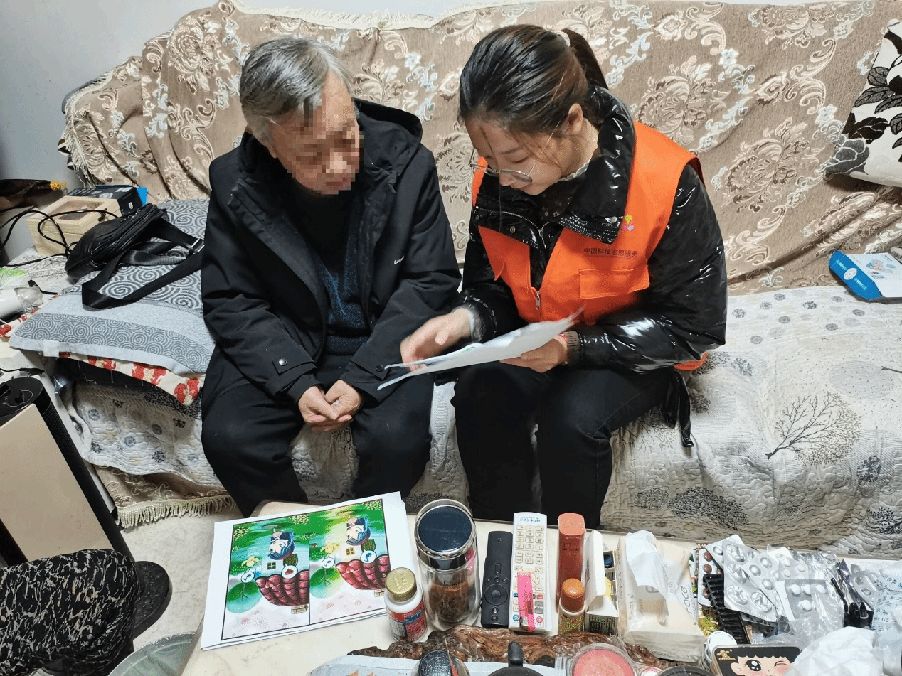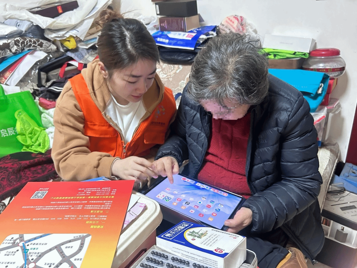 志愿者协助老人激活银龄守护卡