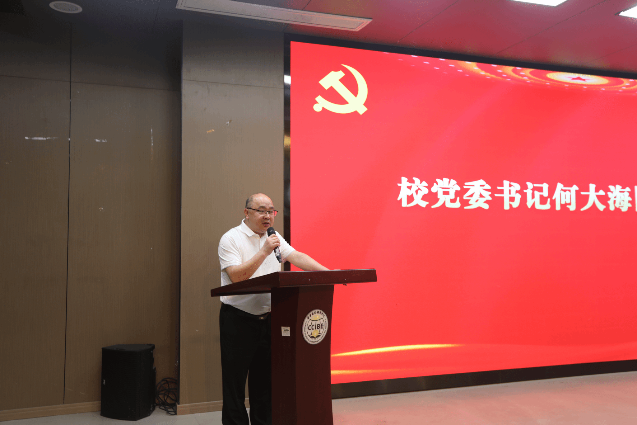 图为校党委书记何大海同志讲话
