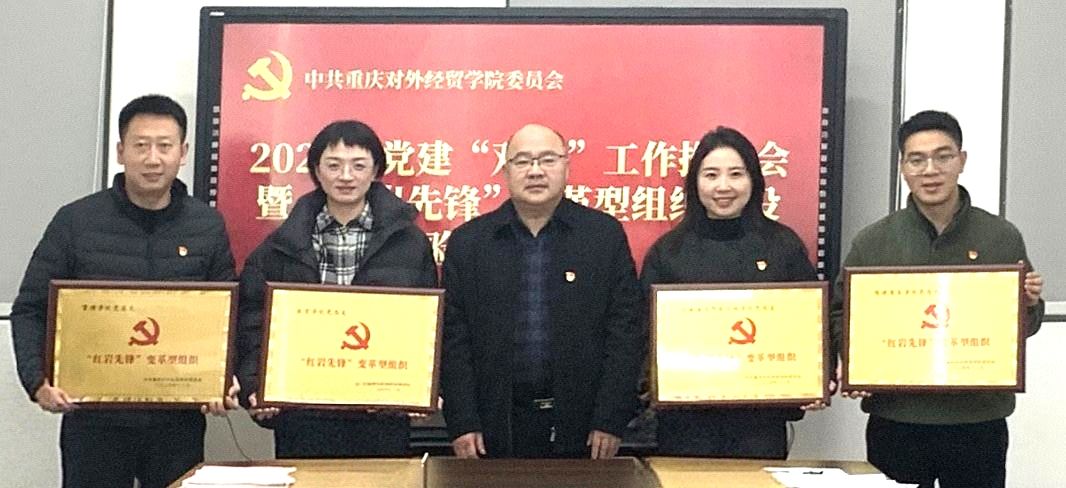 会议首先由跨境商务学院黄大年式教师团队党支部、外语外贸学院党总支分别就样板支部及标杆院系建设情况作简要汇报。