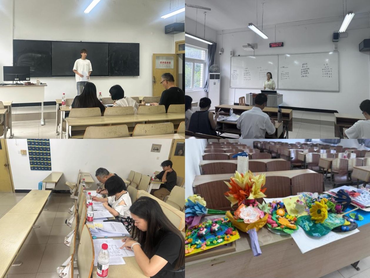 图为语文卓越教师班选拔面试、打分、手工艺品展示