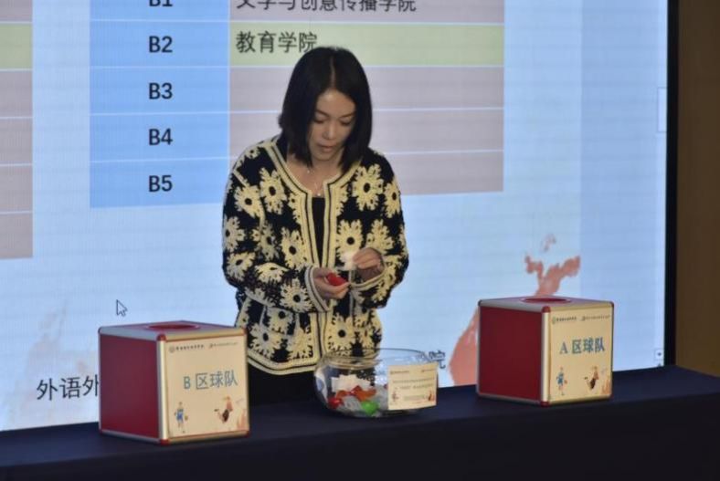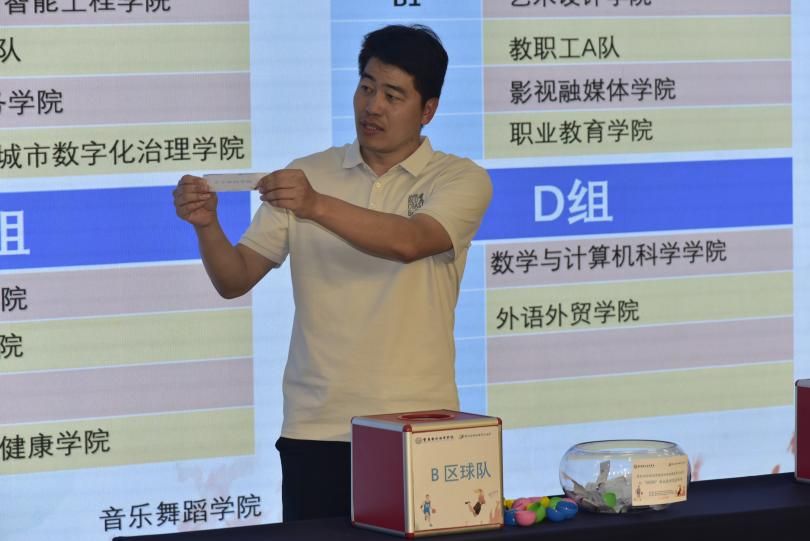 随后,跨境商务学院曾继鹏老师主持抽签仪式,由在场领导分别为男子篮球A、B、C、D组,女子篮球A、B组进行抽签分组,现场气氛热烈、激情四溢。