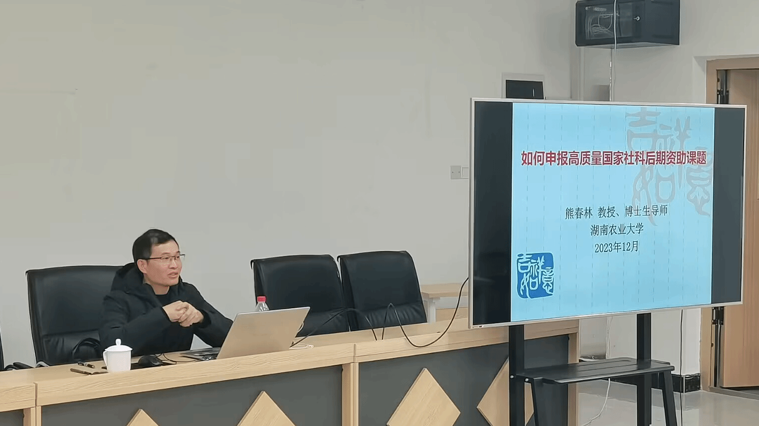 2023年12月11日,学校在B2107会议室举行了《如何申报高质量国家后期资助课题》学术讲座。科研处、管理学院邀请湖南农业大学公共管理与法学学院行政管理系教授,博士生导师熊春林教授作为讲座主讲人,学校后期资助培育计划项目主持人、2023-2024学年校级科学研究重点项目主持人、青枝科研培养计划人员参加了本次讲座。