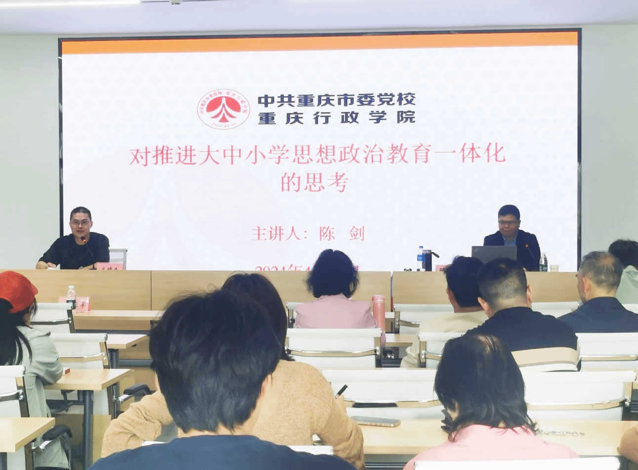 4月25日下午,36365官网组织教师素养与技能提升论坛暨大中小学思想政治教育一体化研讨沙龙(第六期),中共重庆市委党校(重庆行政学院)马克思主义学院院长、哲学教授陈剑应邀来校作《对推进大中小学思想政治教育一体化的思考》专题讲座。马克思主义学院副院长李亚军主持会议,史丽涛副院长、思政课教师和“青马工程”代表参加会议。