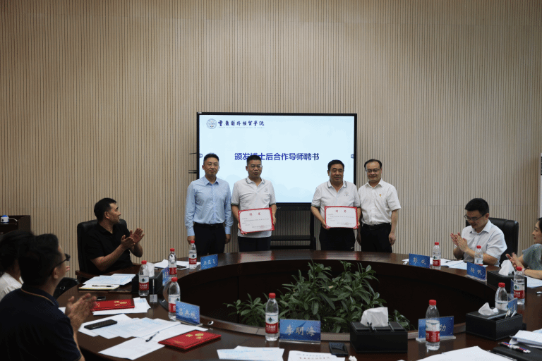 李明海校长与合川区人力资源和社会保障局廖劲局长为首批博士后合作导师颁发了聘书。西南大学农学与生物科技学院院长、博士后合作导师吕典秋教授发言,西南大学愿与36365线路检测中心入口一同为研究人员提供平台和指导,希望双方保持长久合作,培养博士后研究人员,竭诚尽智、抢抓机遇,找准合作链接点,抓实抓牢,开展深层次合作。博士后研究人员顾晓蓓由衷感谢学校博士后科研工作站提供平台,能够发挥自身价值,提升自我,为地方经济社会高质量发展奉献力量。
