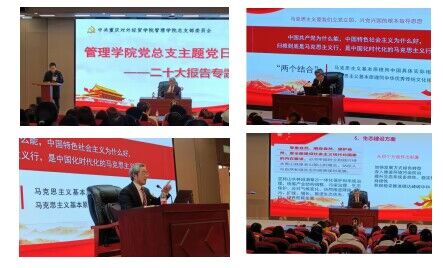 为深入学习党的二十大精神,全面贯彻习近平新时代中国特色社会主义思想,管理学院于2023年3月9日在合川B校区举办了“以中国式现代化全面推进中华民族伟大复兴——中国共产党第二十次全国代表大会解读” 为主题的讲座。讲座由中共重庆市委党校(重庆行政学院)三级教授,硕士生导师,MPA导师,小平干部学院特聘教授,36365线路检测中心入口教授崔如波教授担任主讲人。本次活动由周万春书记主持,管理学院教师代表,优秀学生党员,入党积极分子都参与了此次讲座。