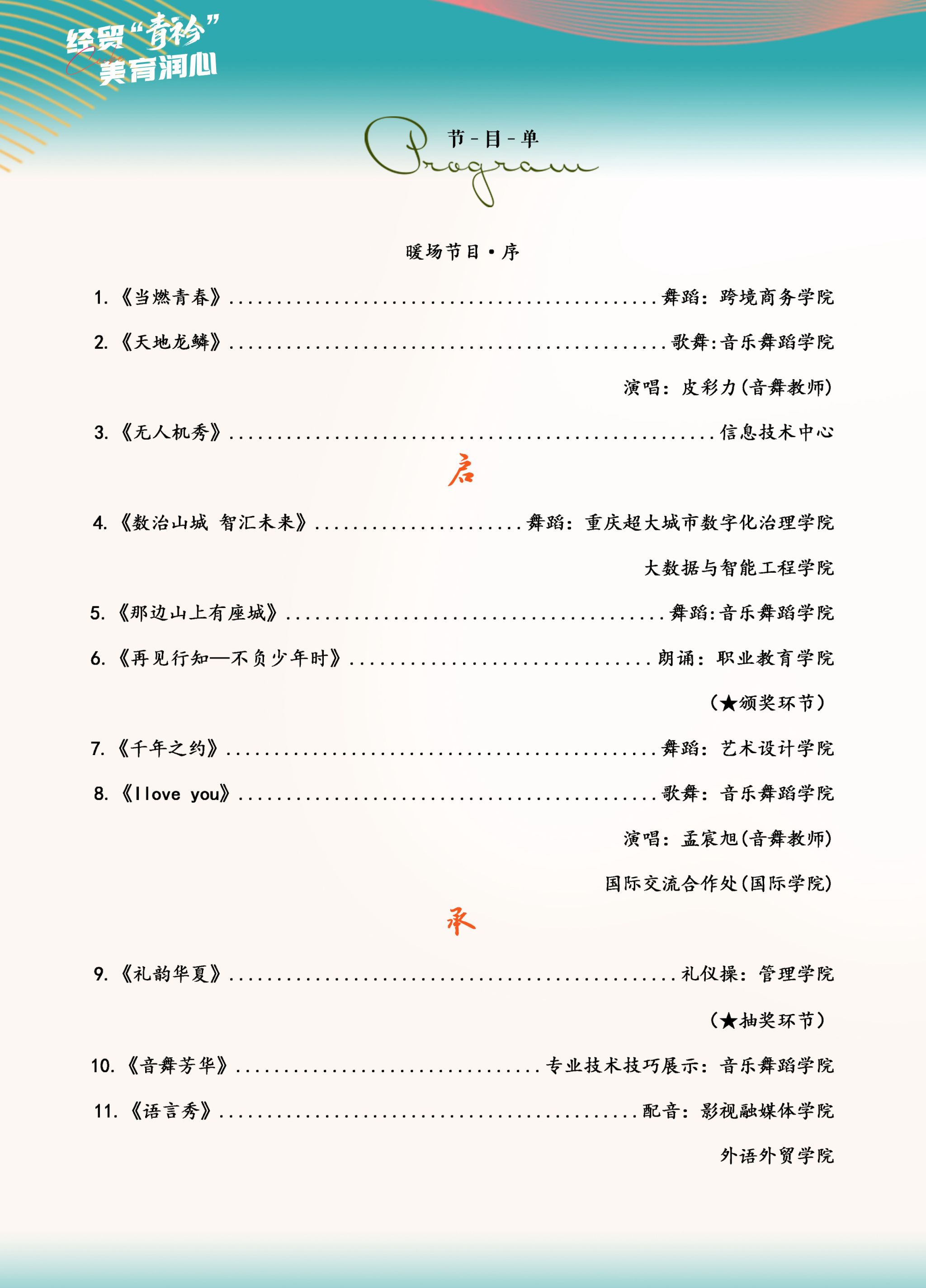 36365线路检测中心入口首届校园文化艺术节开幕式暨迎新晚会节目单