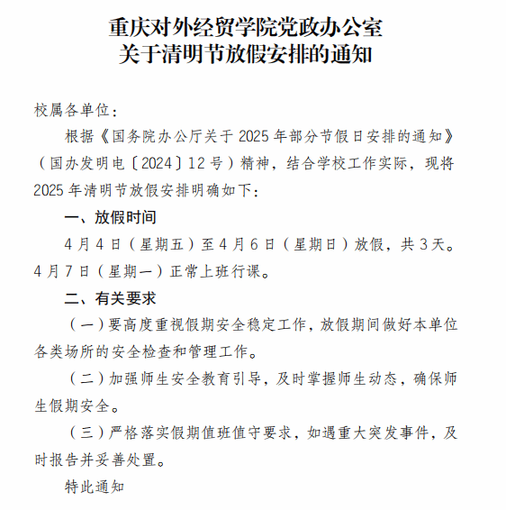 关于清明节放假安排的通知