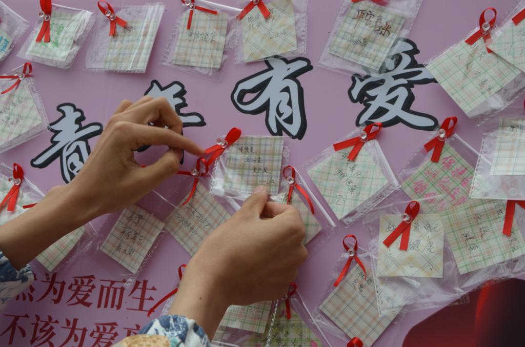 大一的志愿者陈欢说:“这是我第一次参加校园防艾的志愿活动,也真正意义上知道了艾滋病感染者过的是怎么样的生活,我只愿世上没有艾,愿人间充满爱,感谢这次线下打卡活动,让我学会去预防它,去关爱他。”