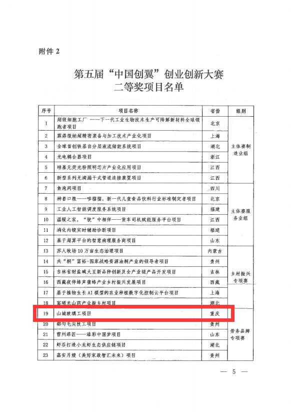 该项赛事是为了落实党中央、国务院关于鼓励支持“双创”的决策部署,营造鼓励支持创业创新氛围,促进创业带动就业、创新引领创业,助力推进乡村振兴,由国家人社部、发展改革委、科技部、共青团中央、中国残联、国家乡村振兴局共同举办的第五届“中国创翼”创业创新大赛。各地按照大赛总体部署,圆满完成省级以下选拔赛和全国选拔赛的组织实施工作后于去年12月举办了全国总决赛。“山城玻璃工”创新创业项目依托合川清平玻璃产业,通过校地共建与校企合作方式组建工作专班和创新创业团队,经过专业化的品牌策划和创业孵化指导,历时近一年的时间深入基层广泛调研和校企双方精诚合作,最终实现了从“清平玻璃工”到“合川玻璃工”再到“山城玻璃工”的三级完美蜕变,作为全市唯一一个劳务品牌项目代表重庆市参加全国比赛,最终不负众望取得了全国二等奖的好成绩,也是本届比赛重庆市取得的最好成绩等次。习近平总书记多次强调“就业是最大的民生工程”!该奖项的获得充分说明了重庆市、合川区在就业创业工作方面取得显著成效,作为全国性的劳务品牌更加代表了地方就业创业工作的“高质量”发展。该荣誉的取得为重庆市赢得了一个享誉全国性的字号品牌——“山城玻璃工”,充分彰显了“行千里·致广大”的山城精神,意义重大。