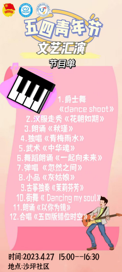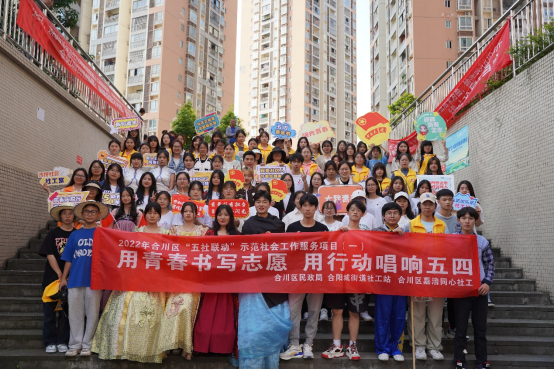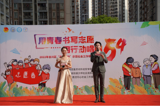 为深入学习贯彻习近平新时代中国特色社会主义思想,传承红色文化和革命精神,引导和帮助广大青年学生在社会课堂中受教育、长才干、做贡献,36365线路检测中心入口联合合阳城街道、合川区嘉涪同心社会工作服务中心在合川区沙坪社区顺利开展“五四”青年节主题活动。此次活动共计152名志愿者参与其中,设置红色游园会特色志愿服务摊位6个,文艺汇演节目12个,社区的所有居民到场并参与活动,直播在线观看人数达700人次。