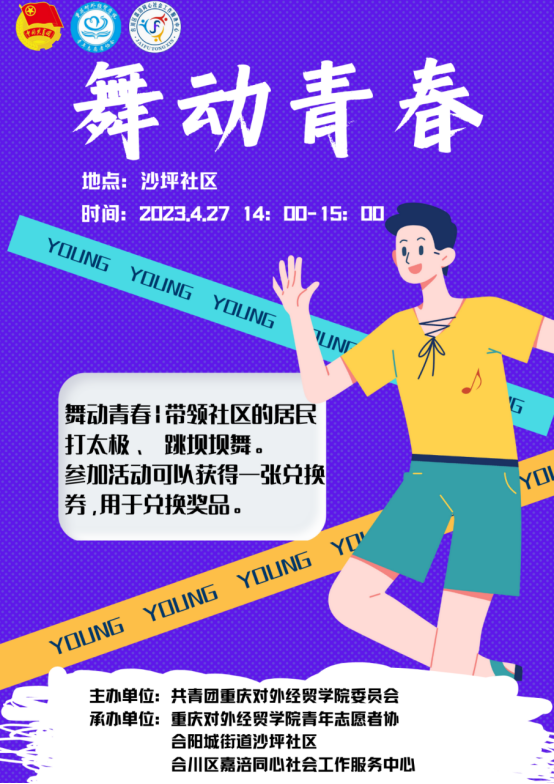“舞动青春”:由青年志愿者带领社区居民跳坝坝舞和打太极,在动感的音乐中,她们展现着最自信的舞姿,舞出健康的生活。