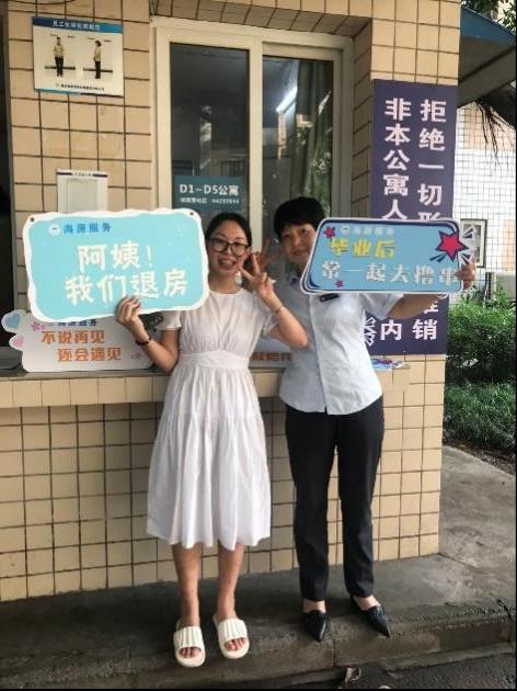 当毕业生们踏上新的征程前,校园中还有海源服务(重庆海源学校后勤服务有限公司)的阿姨们牵挂着你们,阿姨们肩负着服务、方便毕业生的重任,开展一系列的温馨化服务。