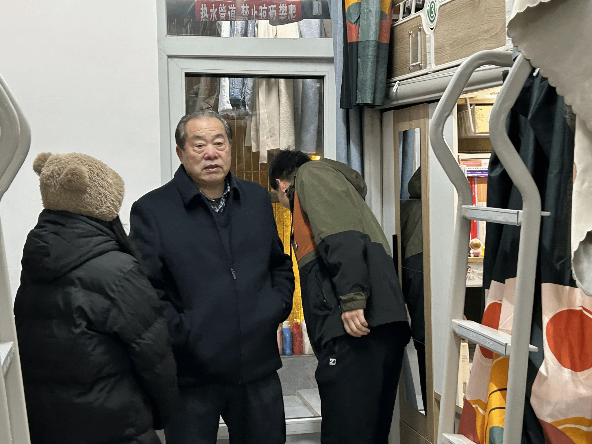 同时,王乃武副校长实地走访部分学生宿舍,与同学们进行深入交流,叮嘱同学们要注意冬季保暖,保持室内环境卫生的整洁;要合理作息,养成良好生活习惯,强化自我约束管理;要加强自我防范意识,自觉遵守学生宿舍管理规定,树立“生命至上,安全第一”的防范意识。