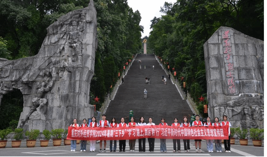 图为团队成员步行进入遵义红军烈士陵园