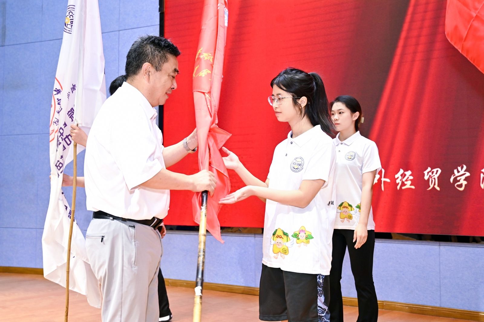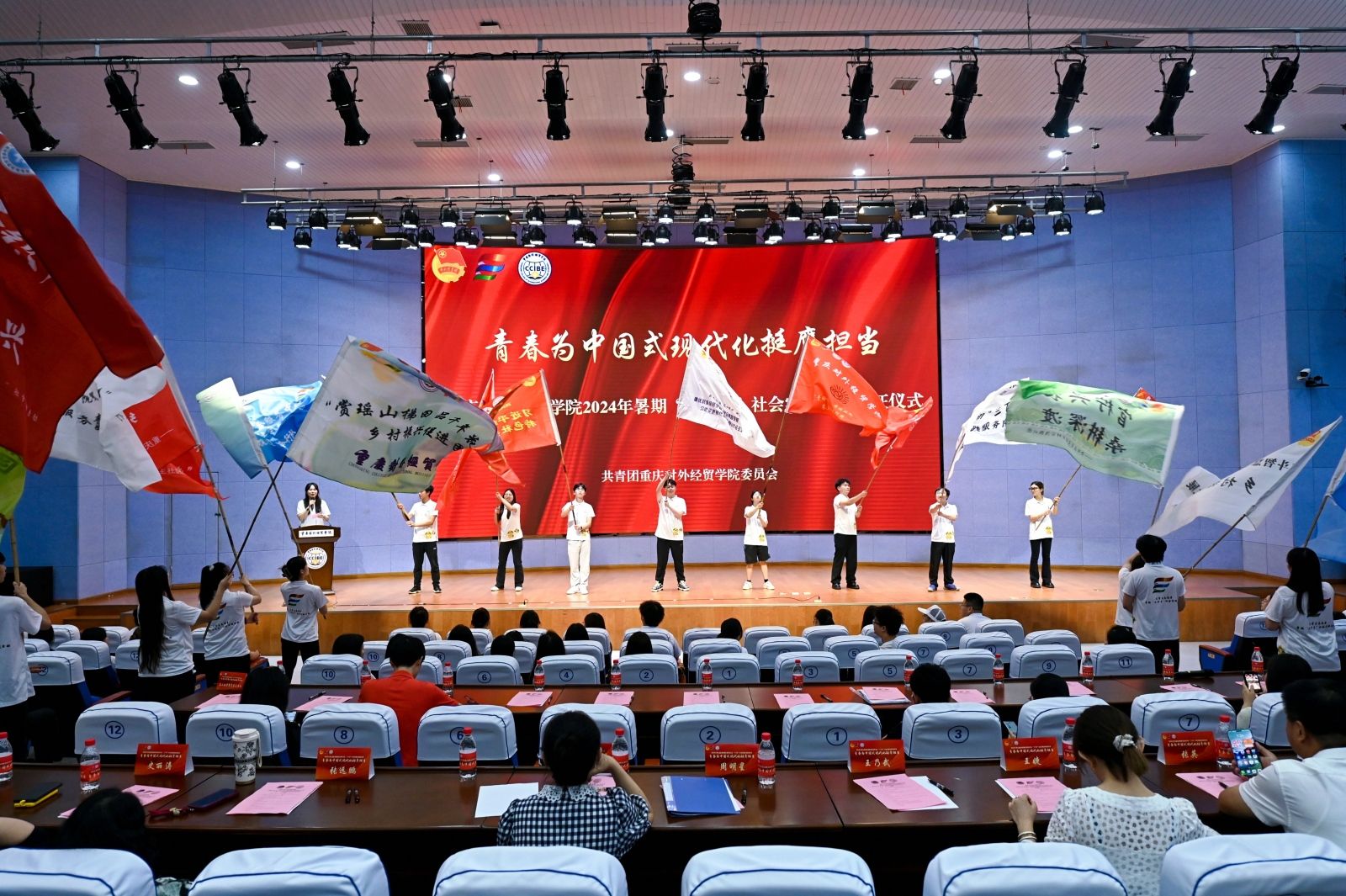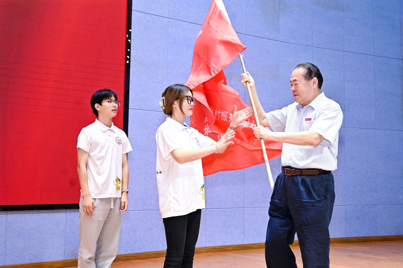 (图为学生处、团委相关负责人为“三下乡”重庆市外团队授旗)