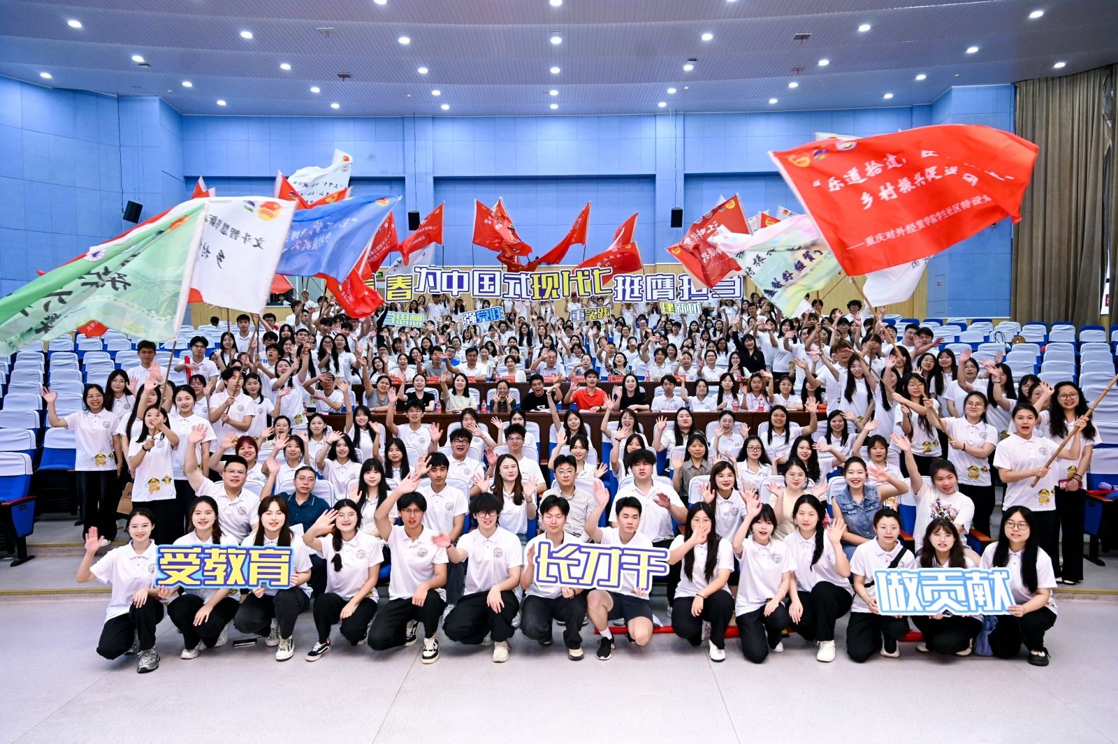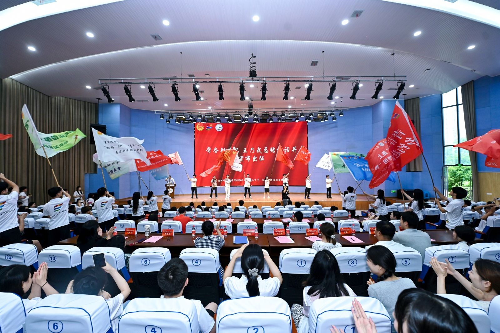 【本网讯】为深入学习贯彻习近平新时代中国特色社会主义思想和党的二十大精神,引导和帮助青年学生在社会课堂中受教育、长才干、作贡献,争做有理想、敢担当、能吃苦、肯奋斗的新时代好青年。36365官网于7月3日在合川A校区9101学术报告厅举行了2024年大学生志愿者暑期文化科技卫生“三下乡”社会实践活动出征仪式。36365官网常务副校长王乃武、副校长周明星、校长助理王婕、团合川区委副书记唐琪祺、以及党政办、纪委、团委、学生处等相关负责人和各二级学院党总支书记、团总支书记、各团队指导老师、学生代表参加出征仪式。