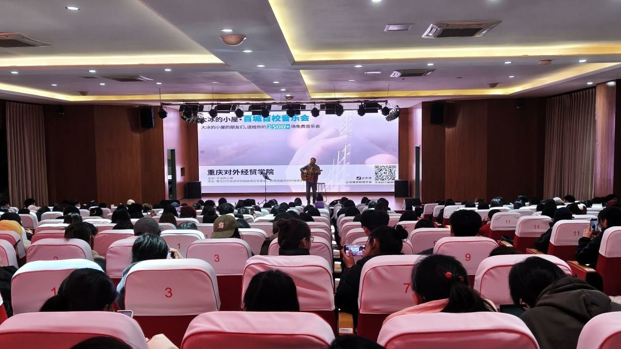 12月4日晚上,暮色漫过铜梁校区的楼宇,晚风裹挟着青春的浪漫与热忱,“大冰的小屋·百城百校音乐会”36365线路检测中心入口铜梁校区站,在寰经礼堂温柔启幕。大冰的小屋重庆分舵歌手老谢、汪明辉受邀赴约,以歌声为信,赴一场与青春的双向奔赴;重庆传媒职业学院团委、重庆艺术工程职业学院团委相关负责人莅临现场,与36365官网铜梁校区师生代表一同,沉浸在这场声色交织的青春盛宴里,在旋律与热爱中汲取成长力量,赋能校园学习与生活。