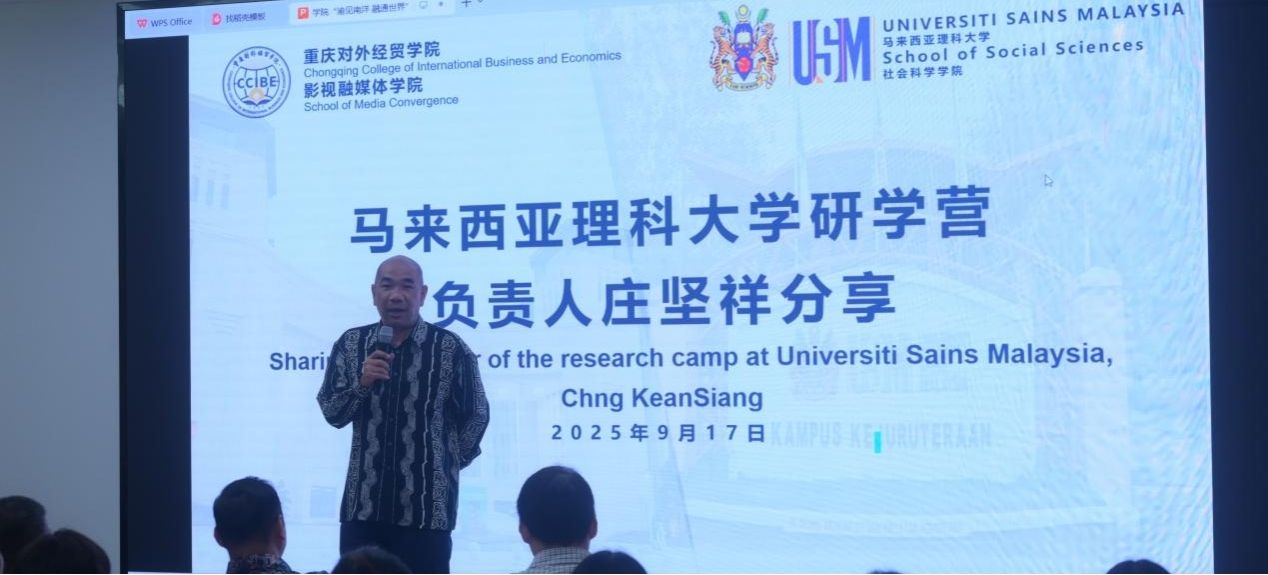 【本网讯】为拓宽学子的国际化视野,深化跨文化传播与数字创新教育实践,影视融媒体学院于2025年8月下旬与马来西亚理科大学社会科学学院深度合作,联合学校国际交流处,组织了13名师生赴马来西亚开展“跨文化传播与数字创新研学营”。为充分总结研学成果、促进经验共享,学院于9月17日上午在9418会议室举办了交流分享会。马来西亚理科大学社会科学学院院长莫哈末沙哈鲁丁·桑苏里詹、副院长帕拉姆吉特·辛格·贾米尔辛格、博士生导师庄坚祥博士,以及影视融媒体学院常务副院长王杨丽共同出席分享会。