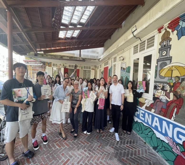 同时,师生们深入校园与槟城社会,开展了一系列文化体验与实践调研活动:在艺术学院的戏剧表演工作坊中亲身体验东南亚传统表演,实地参访娘惹文化博物馆感知历史传承,前往峇都丁宜海滩在自然与人文交融的场景中进行跨文化观察与团队协作。不仅加深了学生对马来西亚本土文化的理解,更在实践中有效提升了他们的跨文化沟通能力、团队协作精神与社会洞察力。